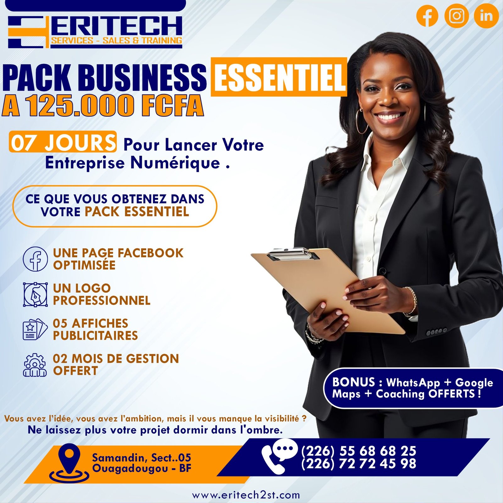 #Entrepreneuriat #PackEssentiel #StartUp #CommunicationDigitale #GestionReseaux #Eritech #VisibilitéEnLigne #Coaching #PME #125k
